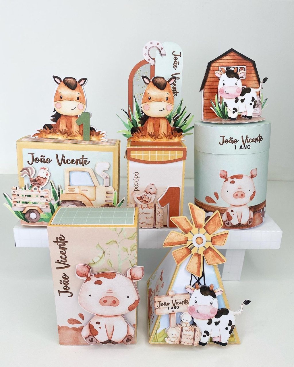 Opção de 30un: 06 cx redonda 3D - 06 quadrada alta - 06 pirâmide - 06 quadrada 3D - 06 cenário